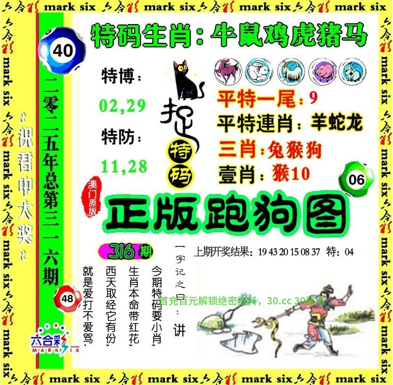 | 316期:羊牛鸡龙鼠虎,合双小数中本期开:马24准 |